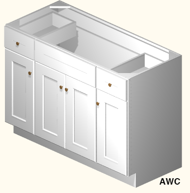 Vanity Sink Base 48"W x 21"D x 34-1/2"H - (1) B12 on Left, (1) B12 on Right, (1) SB24 in Center