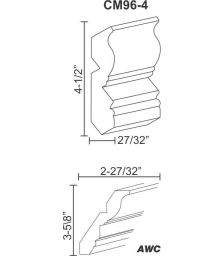 Crown Molding - 2-27/32"W X 3 5/8"H X96" Plain